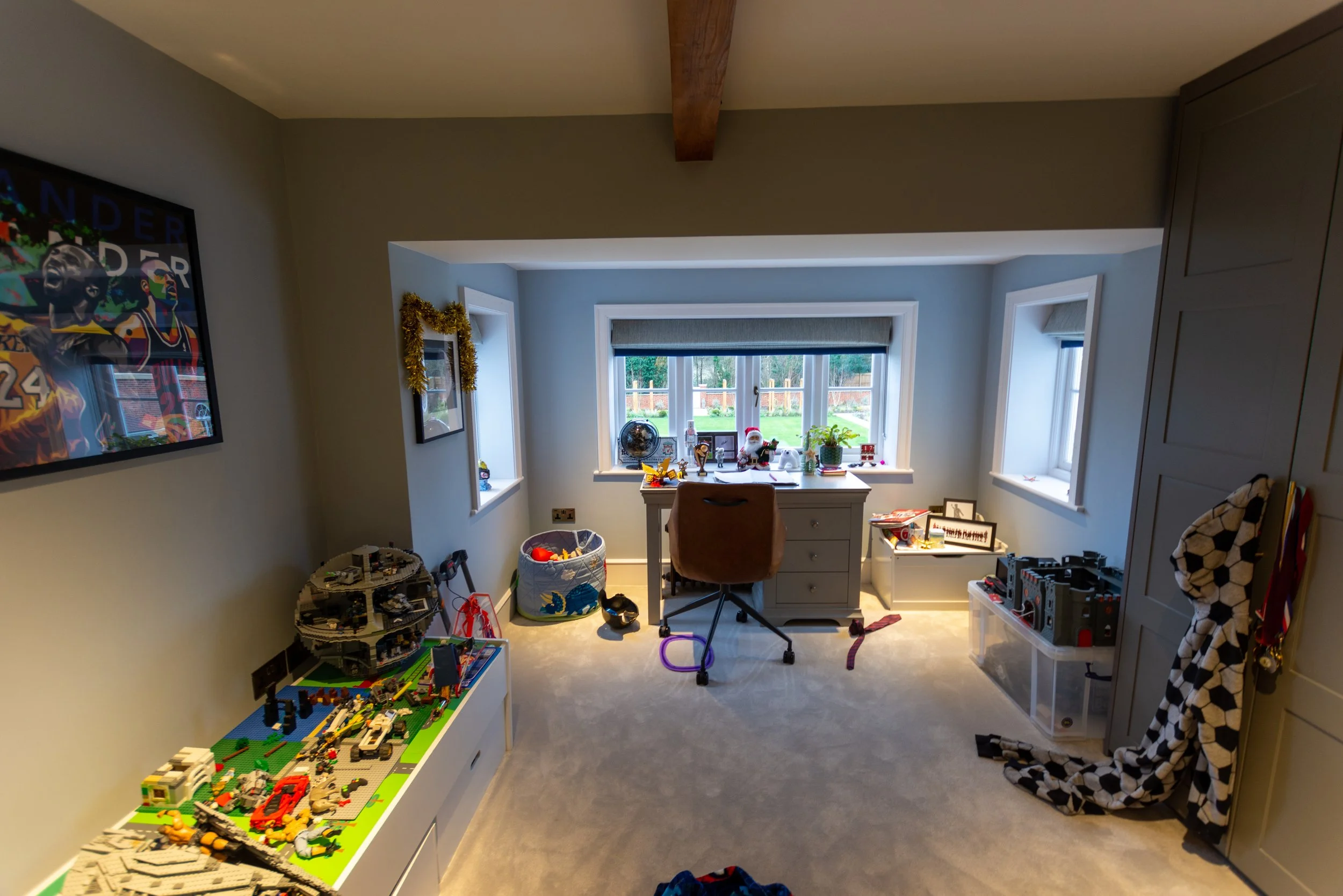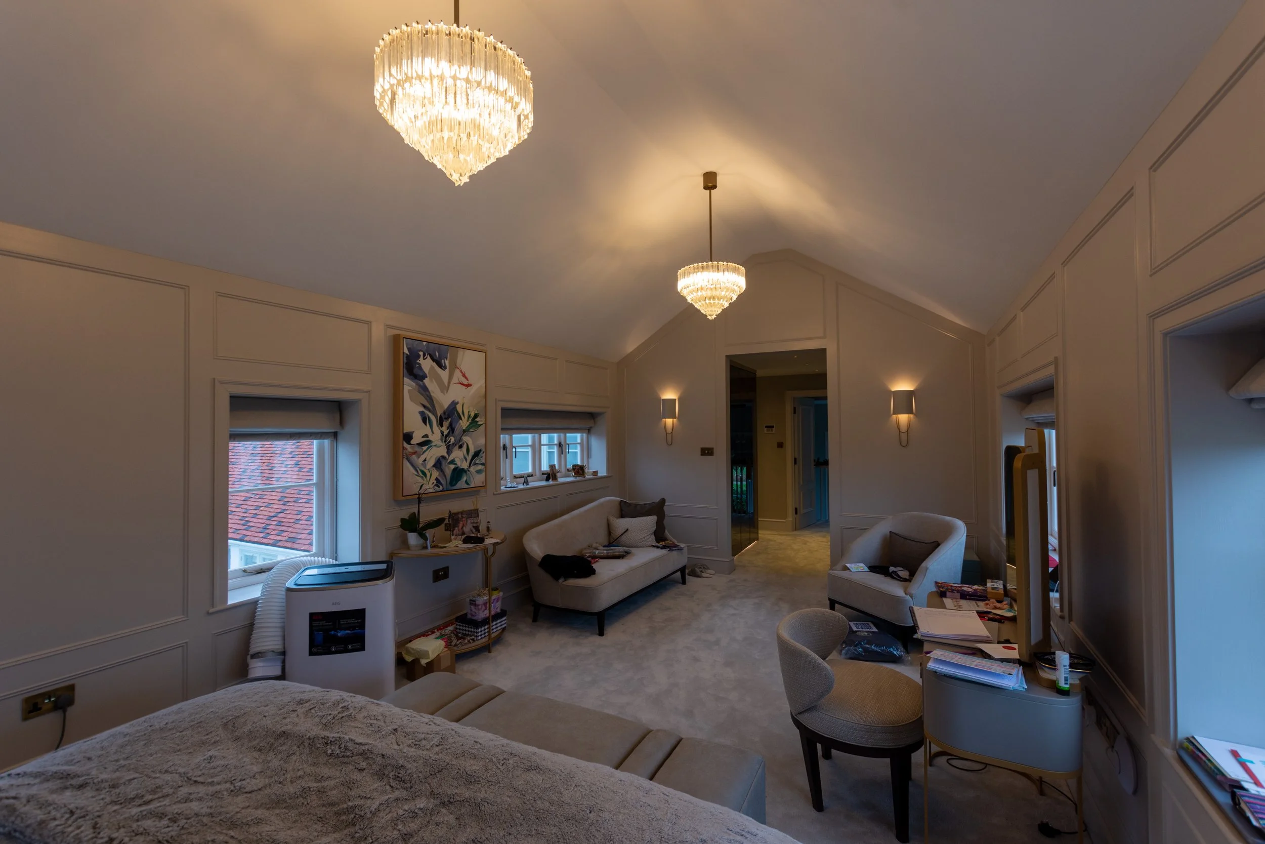 Double bedrooms for all were required alongside a spare room for guests, each with the design of the client’s interior designer were individually tailored to each family member. Although most internal walls were removed and replaced, certain historic elements of the property were retained such as the large bay window area in one bedroom, and the tall vaulted ceiling in the master bedroom.